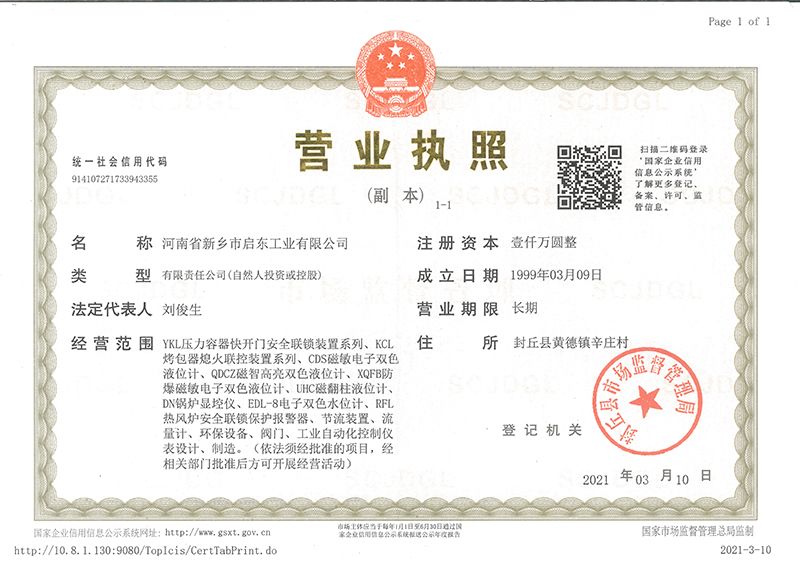 河南省新鄉市啟東工業有限公司始建于1987年,是專注研發、生產自動化儀器儀表(主要與壓力容器、鍋爐等容器配套使用)的廠家。主要產品有液位計(磁敏雙色型、磁翻柱型等)系列、烤包器熄火聯控裝置系列、壓力容器快開門安全聯鎖保護裝置系列、鍋爐報警器系列。二十多年來,公司產品暢銷國內并遠銷俄羅斯、蒙古與東南亞,深得廣大用戶的信賴和好評。我們多年來致力于自動化儀器儀表的研制生產,公司現具有完善的生產、試驗、檢測手段和設備。科技創新、誠信服務,是我們不變的經營理念,我們將以強有力的技術支持及售后竭誠為客戶提供良好的服務。  2012年我公司成功研發了KCL系列烤包器熄火聯控裝置,并于2013年2月2日榮獲中華人民共和國國家知識產權局辦法的《實用新型**證書》<**號:2021202257735>該產品廣泛應用于唐鋼等大型鋼鐵企業,為烤包器安全作業提供了有力的保障。  2002年我公司成功研發磁敏電子雙色液位計獨特的高亮度LED紅綠雙色顯示,獲得了專家的首肯和用戶的一致好評。在此基礎上我公司研發人員十年磨一劍,致力于XQFB-1防爆型磁敏雙色液位計的研發,于2013年12月27日由國家防爆電器產品質量監督檢驗中心檢驗合格并頒發防爆合格證書<編號:cnex19.0883>。該產品性能得到了充分的發揮,廣泛應用于含有Ⅱ類A·B級T1-T4組可燃氣體或蒸汽與空氣混合形成的爆炸性混合物的0區、1區危險場所。連接用戶DCS或PLC系統實現遠距離集中顯示和控制,從而實現節能、數字化管理。為用戶增加了一定的經濟效益和社會效益,。2014年公司成功申請了夢潤儀表的logo,新的品牌新的形象,夢潤儀表是啟東的LOGO, 歡迎新老用戶前來洽談合作?! ∥覀円蝗缂韧刈⒅乜蒲械耐度耄瑧{借產品的不斷更新、加大科技含量,進一步拓展市場。我們相信品質成就未來,以過硬質量、優惠價格、完善的售后服務熱忱歡迎廣大客戶來我司視察指導、洽談業務;精誠合作,共創輝煌!
